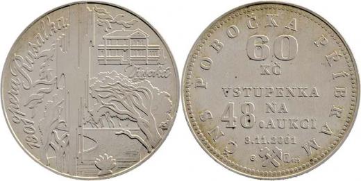 Vstupenka na 48.aukci 3.11.2001 - 100 let opery Rusalka / 6-řádkový nápis a opis, Nesign., Ag925, 27mm, 14.848g, pouze 30ks RR!