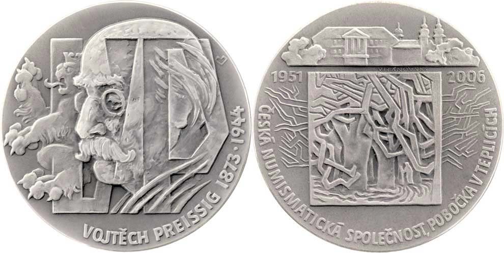 Vitanovský - Vojt. Preissig - 55 let pobočky 2006 - hlava zleva, český lev, písmo / město, stromy, písmo, Sign., patin. Ag925, 40mm, 32.013g, 25ks, etue RR!