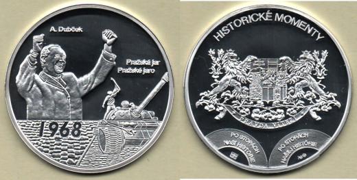Historické momenty (cca 2010) - Pražské jaro 1968 - A.Dubček, tank, nápisy/ státní znak, nápisy, Nesign., Ag 35mm, 10.396g, kapsle, text