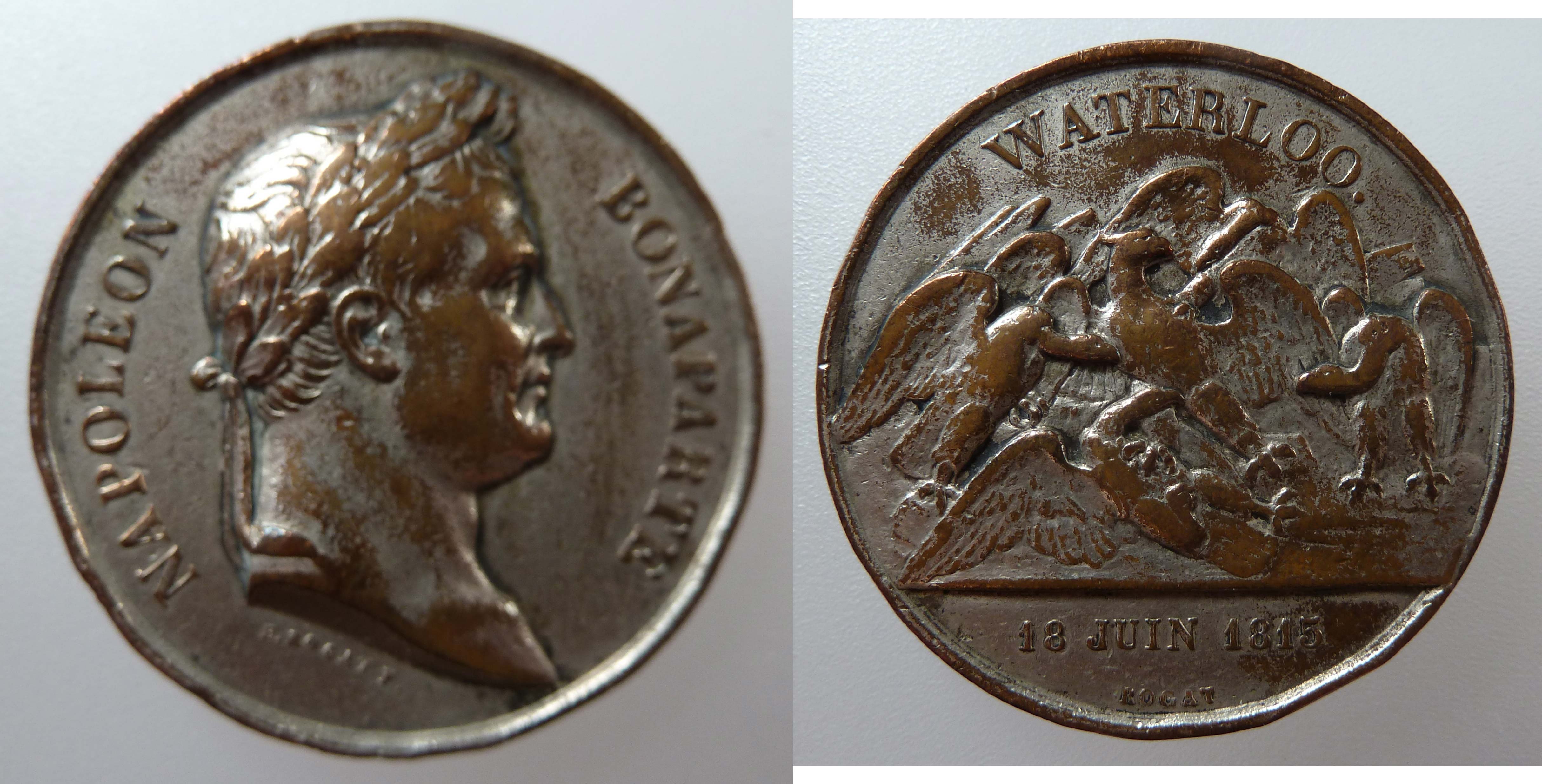 Rogat - AE medaile na bitvu u Waterloo 18.6.1815 - poprsí zprava, opis / orel obklíčen supy, nápis, Sign., 40mm, Zeitz.0, hrany, špatně postř., patina