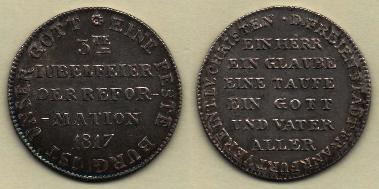 Nesign. - AR jeton na 300.výročí reformace 1817 - 5-řádkový nápis a opis / 6-řádkový nápis a opis, Nesign., 26mm, 4.865g, nep.hr., nep.rysky, patina