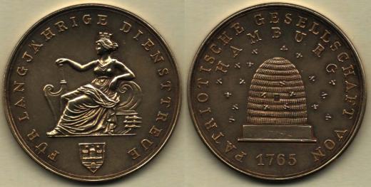 Vlastenecká společnost (založ. 1765) - za dlouholetou službu, sedící personifikace města, znak, opis / úl, dvojitý opis, Nesign., Nepunc., zlac.Ag 28mm, 8.848g