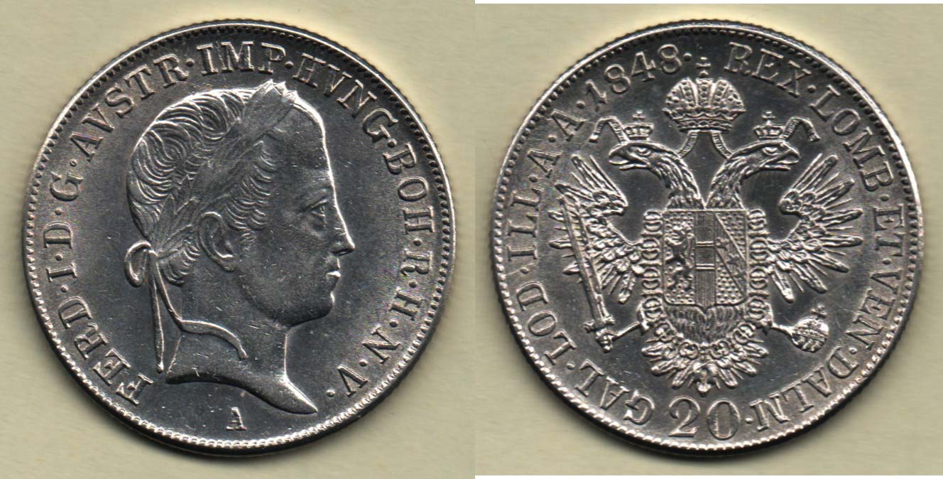 20 Krejcar 1848 A, nep.just., nep.hr., nep.rysky