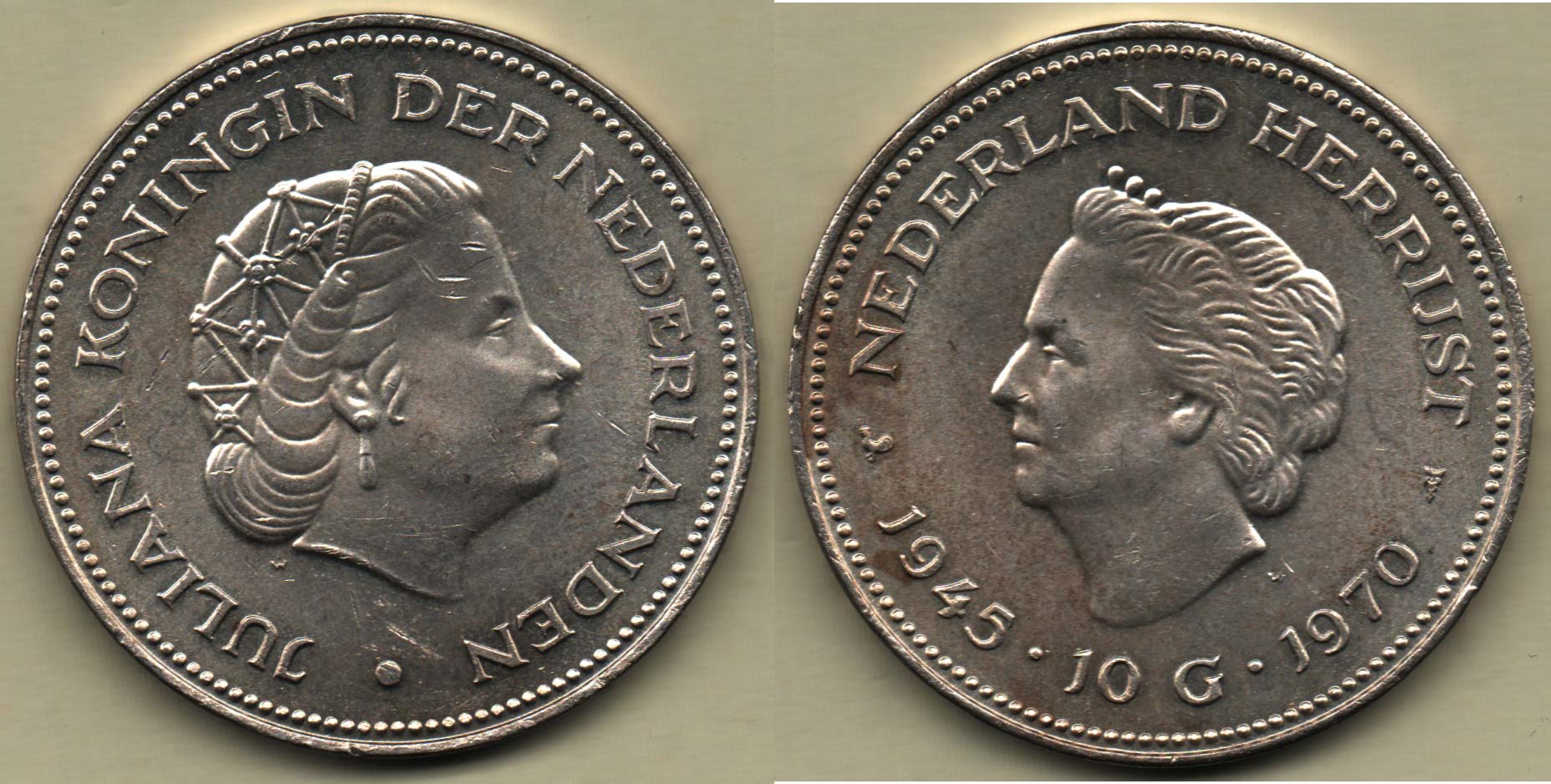 10 Gulden 1970 - 25 let osvobození, KM.195, 24.994g, nep.hr., dr.rysky, téměř