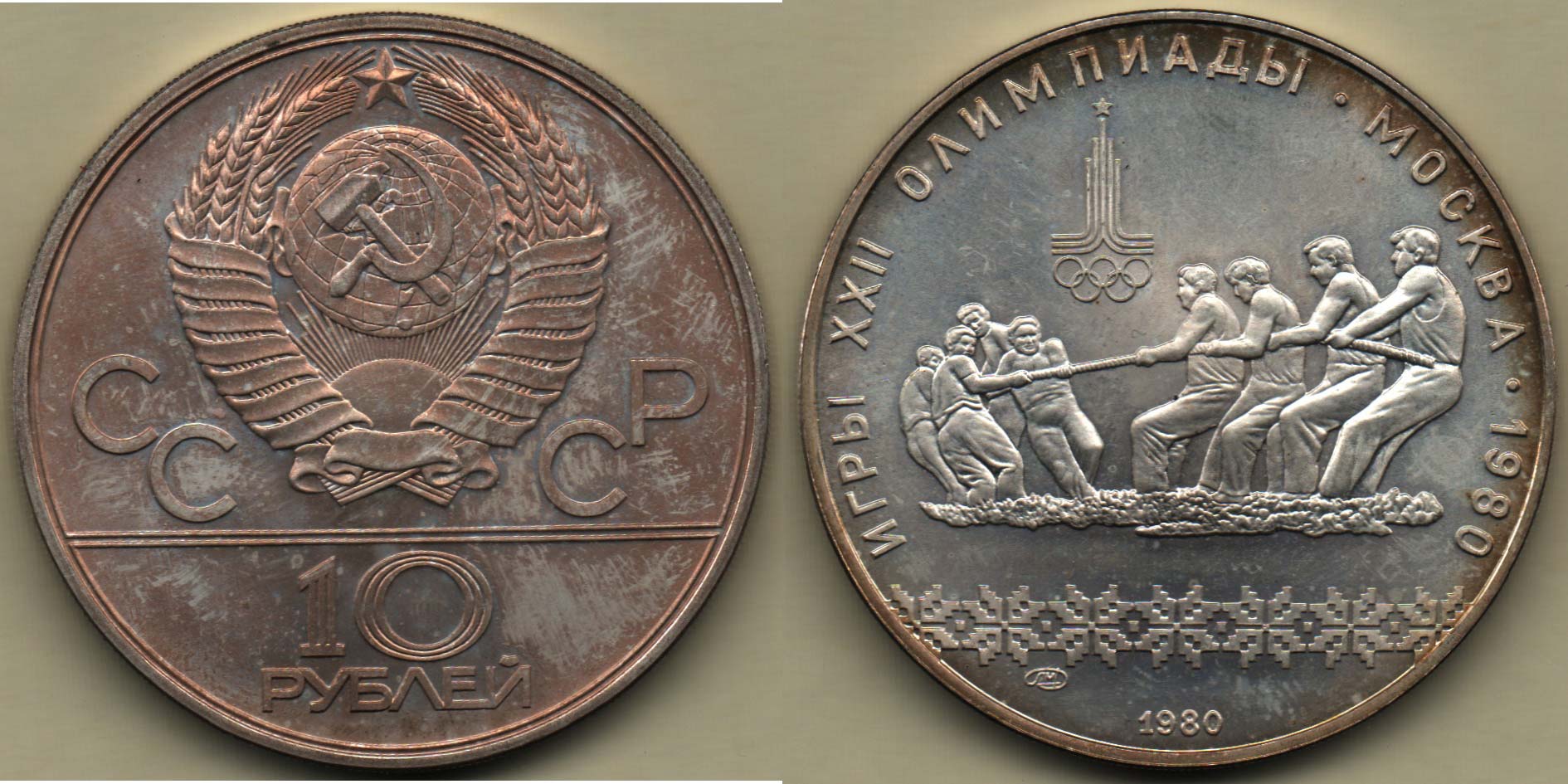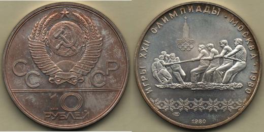 10 Rubl 1980 LMD - LOH přetahování lanem, Y.184, 33.573g, patina, téměř