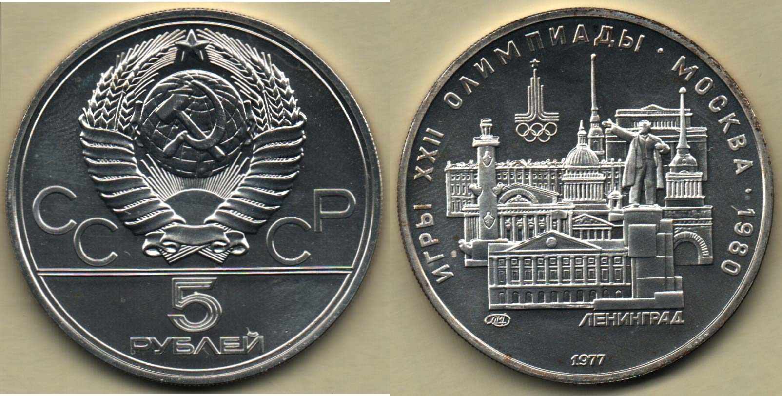 5 Rubl 1977 LMD - LOH Leningrad, Y.146, 16.536g