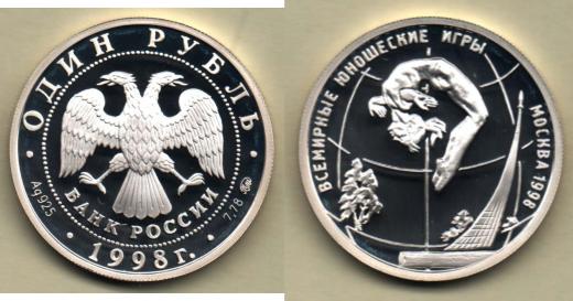 Rubl 1998 - Světové hry mládeže - sport. gymnastika, Y.615 (Ag925, 8.53g, pouze 25.000 ks), kapsle