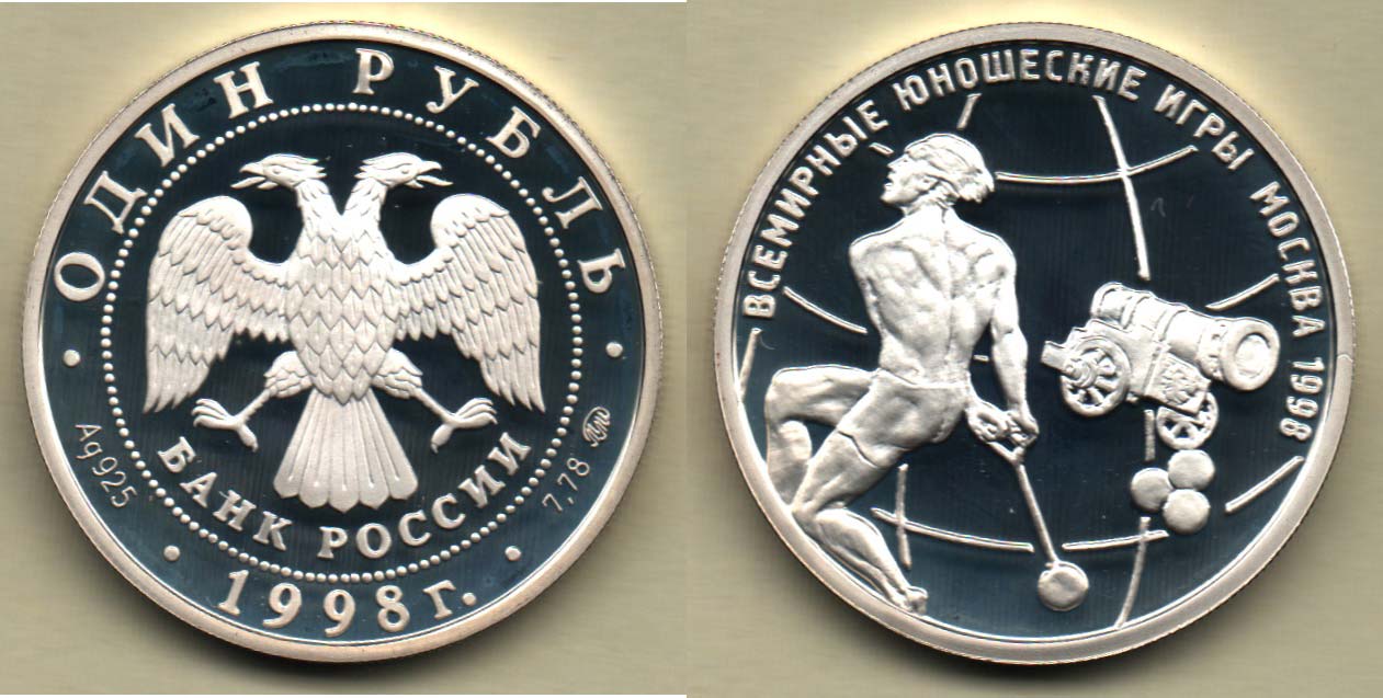 Rubl 1998 - Světové hry mládeže - hod kladivem, Y.617 (Ag925, 8.53g, pouze 25.000 ks), kapsle