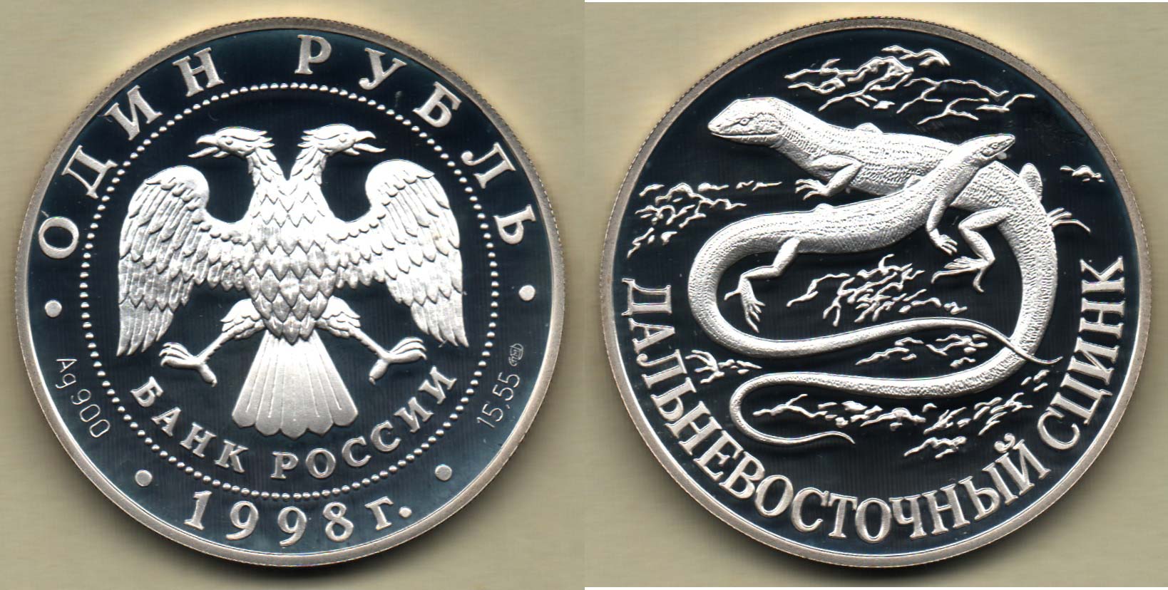 Rubl 1998 - scink dálněvýchodní, Y.628 (Ag900, 17.55g, pouze 15.000 ks), kapsle
