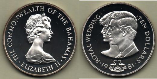 10 Dolar 1981 Ag - sňatek prince z Walesu, KM.85, nep.skvrnky, kapsle