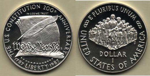 Dolar 1987 S (Ag) - 200 let ústavy, KM.220, kapsle