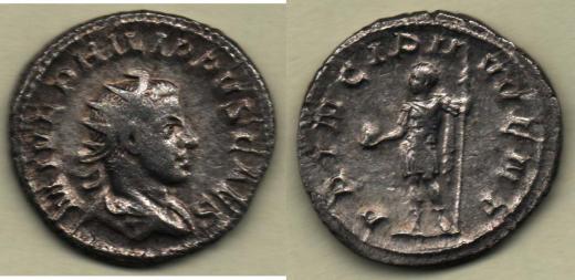 AR Antoninianus, Rv:"PRINCIPI.IVVENT.", césar zleva, S.2552, RIC.218d - minc. Řím - ražba z let 244- 246