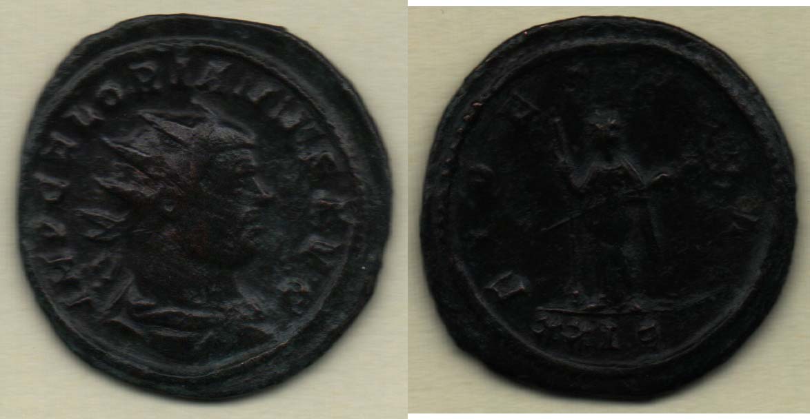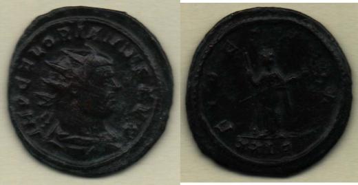 AE Antoninianus, Rv:"FIDES.MILIT." stojící Fides, S.neuvádí, RIC.30 - mincovna Řím - 6.dílna - blíže nedatován, tmavá patina, lakovaný R!