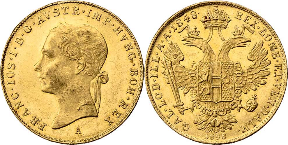 Dukát 1848/1898 A - jubilejní (pouze 26.000 ks), 3.486g, dr.hr., dr.rysky, téměř R!