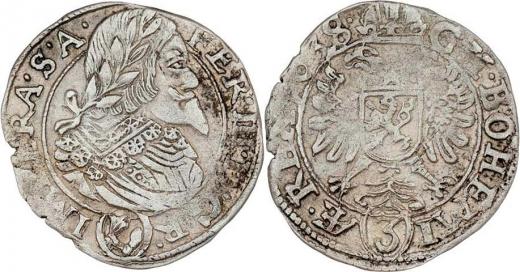 3 Krejcar 1638, K.Hora-Geronis, J.4b, MKČ.1196, 1.632g, nepravidelný okraj, nedor., pěkná patina RR!