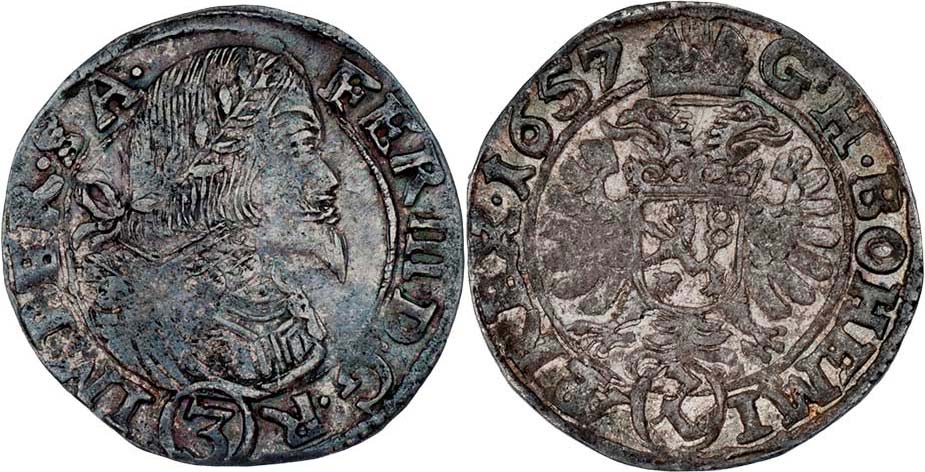 3 Krejcar 1657, K.Hora-Hackl, J.5, MKČ.1197, 1.710g, nep.nedor., nep.dvojráz, pěkná patina
