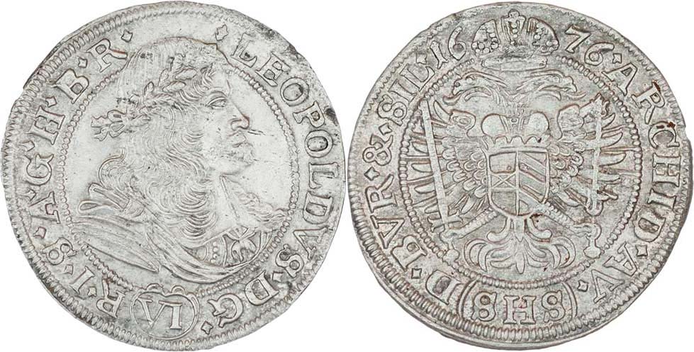 VI Krejcar 1676, Vratislav-Hammerschmidt, MKČ.1606, Nech.702, 2.928g, dr.vady materiálu, patina