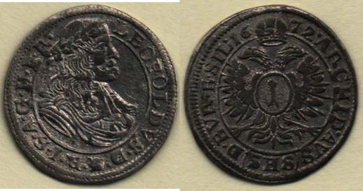 Krejcar 1672, Vratislav-Hammerschmidt, MKČ.1637, Nech.761, 0.822g, dr.vady razidla, skvrnky, patina