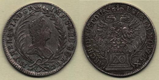 20 Krejcar 1763, Praha-Erdmann, N.30, MKČ.1950, 6.609g, nep.exc., nep.rysky, pěkná patina, téměř