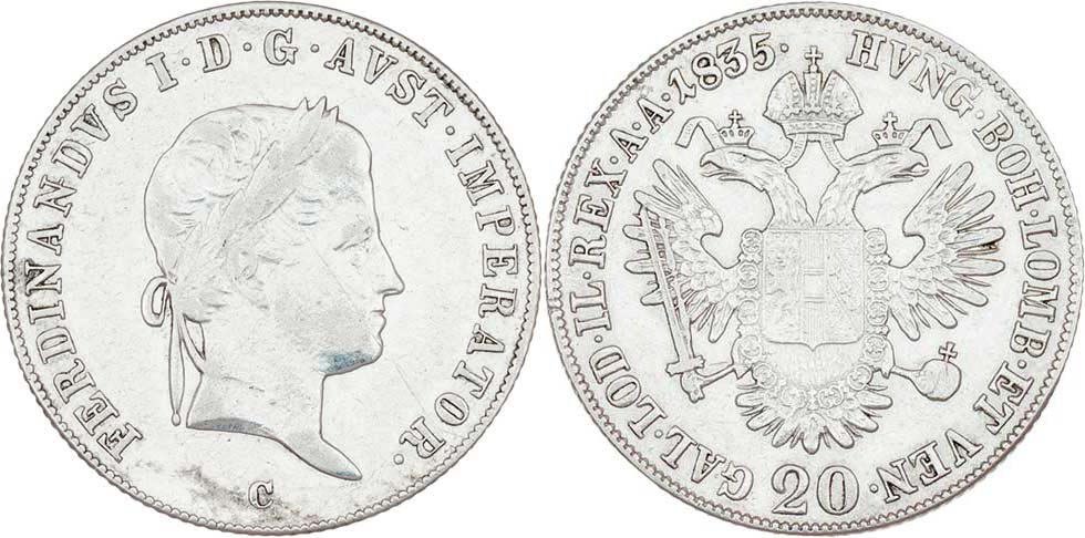 20 Krejcar 1835 C - FERDINANDVS, 6.595g, vlas.škr., nep.hr., dr.rysky