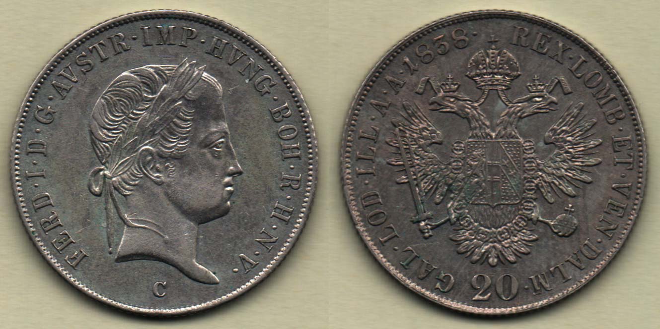 20 Krejcar 1838 C, 6.661g, nep.just., vlas.rysky, patina