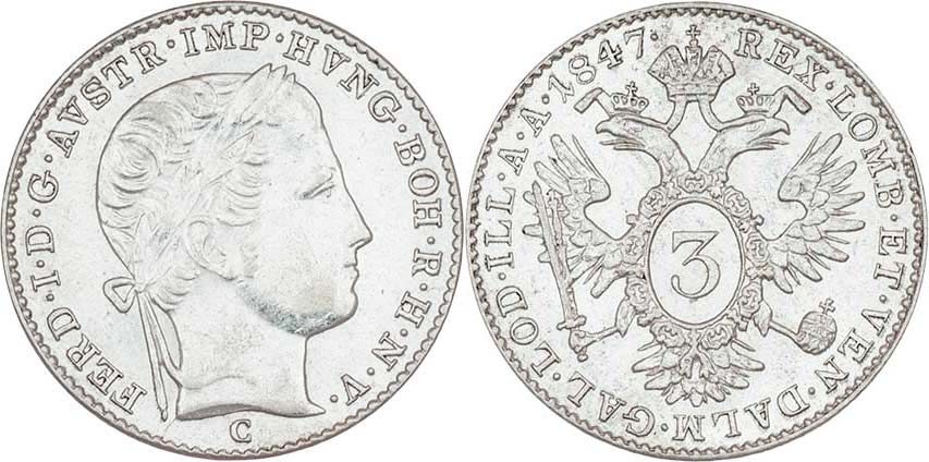 3 Krejcar 1847 C, 1.646g, nep.rysky
