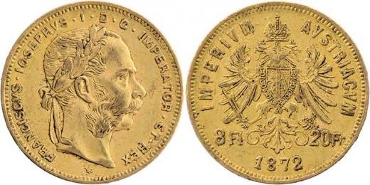 8 Zlatník 1872 (pouze 5.185 ks), 6.438g, dr.hr., nep.rysky, patina R!