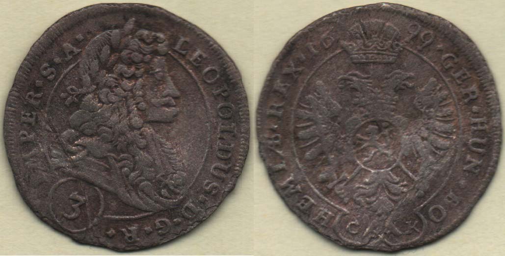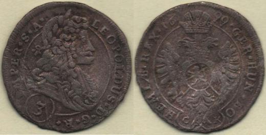 3 Krejcar 1699, K.Hora-Krahe, Nech.319, MKČ.1460a, 1.410g, vada mater., nedor., napr., tmavá patina R!