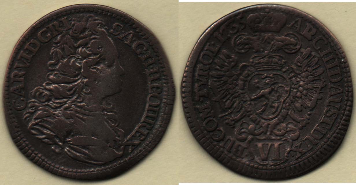 VI Krejcar 1735, Praha-Scharff, J.13, MKČ.1822, 3.278g, nedor., tmavá patina
