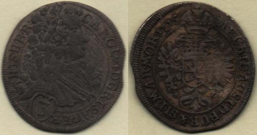 3 Krejcar 1715, Praha-Scharff, J.8c, MKČ.1825, 1.464g, exc., krajový stř., nep.nedor., tmavá patina