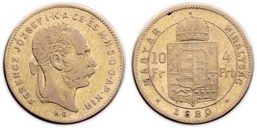 4 Zlatník 1880 KB (raženo pouze 13.000 ks), 3.058g, nep.hr., dr.rysky, patina R!