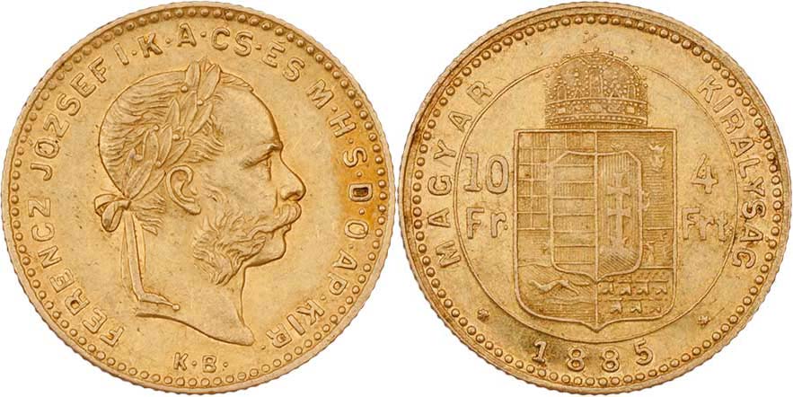 4 Zlatník 1885 KB (pouze 64.000 ks), 3.211g, nep.hr., nep.rysky, patina, téměř
