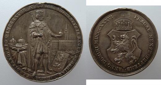 Lerchenau - AR medaile na korunovaci v Praze 1836 - Sign., 35mm, 17.044g, ČS.1491, Nov.D.2b, stopa po oušku, hlazena v ploše, velké hrany, vlas.škr., pat.