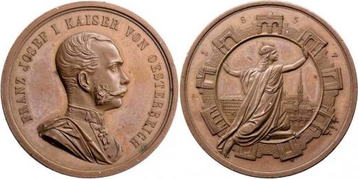Seidan - AE medaile na zboření vídeňských hradeb 1857 - poprsí zprava, opis/ klečící Vindobona trhá hradby, Sign., 44mm, 32.596g, jako H.3777, MZČ.150/20, rysky