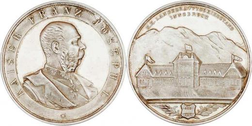 Dobihal - otevření Zem.střelnice v Innsbrucku (1893) - poprsí zprava, opis / střelnice v krajině, znak, ratolesti, opis, Punc., Ag 36mm, 19.487g, vl.rysky