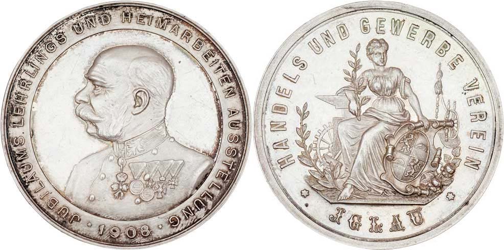 Christlbauer - Jubil. výstava v Jihlavě 1908 - poprsí zleva, něm. opis / personifikace, něm. opis, Sign., Punc., Ag 44mm, 27.003g, nep.hr., nep.rys., pat.,tém.