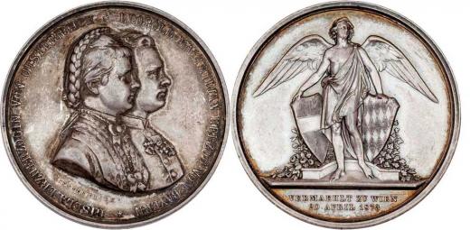 Tautenhayn - AR svatební medaile 1873 - dvojportrét, opis / anděl se znaky Rakouska a Bavorska, nápis, Sign., 42mm, 34.746g, H.4016, dr.hr., dr.rysky, pat.