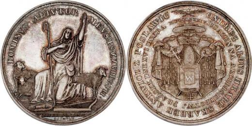 Lerchenau - AR intronizační medaile 16.II.1834 - Kristus jako pastýř, opis / korunovaný znak, české opisy, Sign., 34mm, 17.432g, Don.4668, Přib.503, pat.