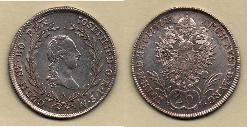 20 Krejcar 1787 A, P.31, 6.564g, dr.vada razidla, nep.just., nep.rysky