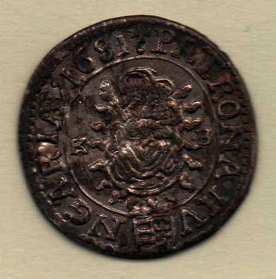 3 Krejcar 1681 KB, Nech.1221, Husz.1465, 1.522g, nep.nedor., pěkná patina, starý podložní lístek, tém.