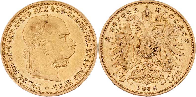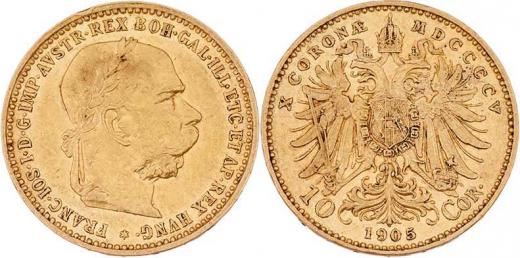10 Koruna 1905, 3.379g, dr.hr., nep.rysky, patina, téměř