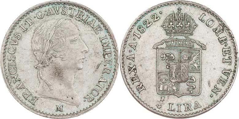 1/4 Lira 1822 M, P.28, 1.613g, dr.vada razidla, patina, téměř