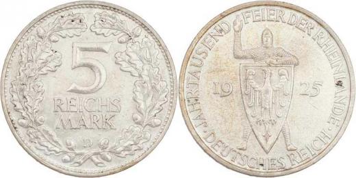 5 Marka 1925 D - 1000 let Porýní, KM.47, 25.058g, dr.hr., nep.rysky