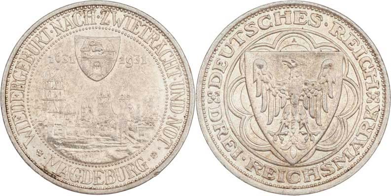 3 Marka 1931 A - Magdeburg, KM.72, 14.930g, dr.hr., dr.rysky R!