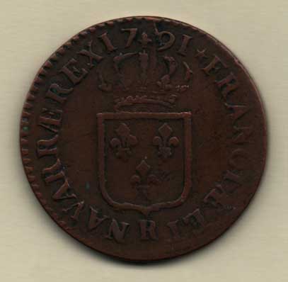 Sol 1791 R, Orleans, KM.578.14, dr.vady materiálu, dr.vady razidla, nedor., patina