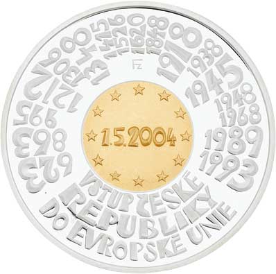 2500 Koruna 2004 - bimetal - vstup do EU, 31.243g (z toho 1/4 Unce Au999), kapsle, etue, karta