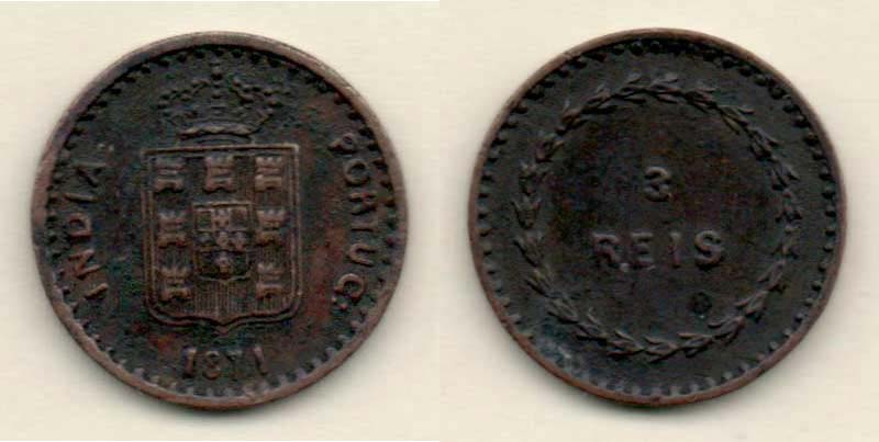 3 Reis 1871, KM.1 (Cu), 1.879g, nep.hr., nep.rysky, pěkná patina R!