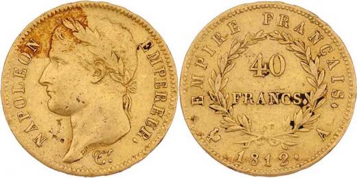 40 Frank 1812 A, KM.696.1, 12.839g, dr.hr., rysky, skvrna, patina