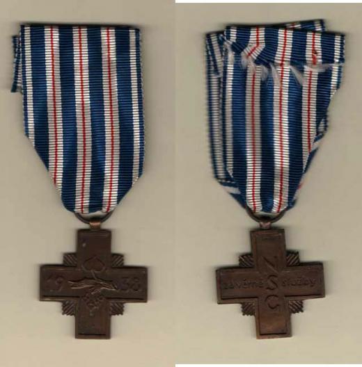 NSG - Národní garda - kříž za věrné služby, VM.77a, Sign.Znoj, vydání z roku 1938 z mat.bronzu, skvrnky