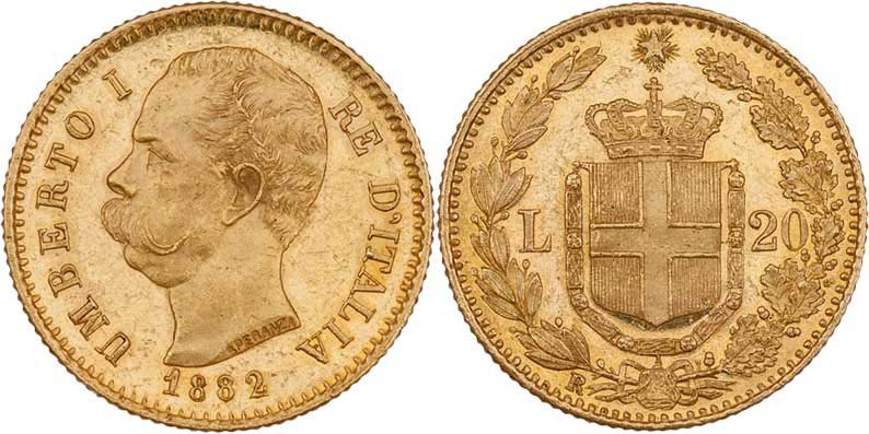 20 Lira 1882 R, Roma, KM.21, 6.436g, nep.hr., nep.rysky